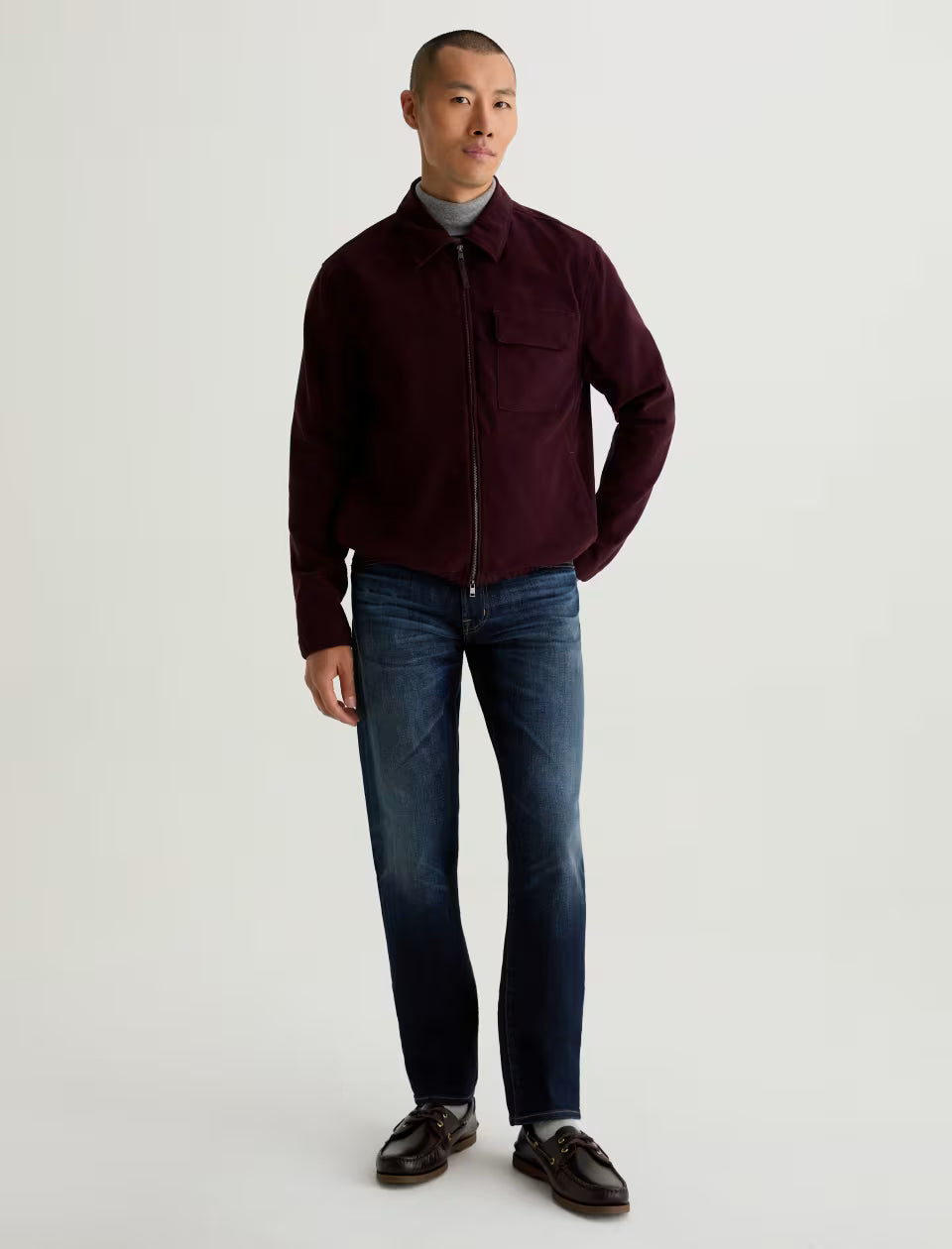 The Tellis modern slim jean combines classic denim styling with a contemporary silhouette. Designed with a fitted upper block and tapered leg opening that's slim but not too skinny. Crafted from Masaaki Comfort Stretch Denim for versatile style and comfort. The pair comes in a dark indigo AG-ed™ wash with fading, whiskering, and distressing to emulate 4 years of wear.