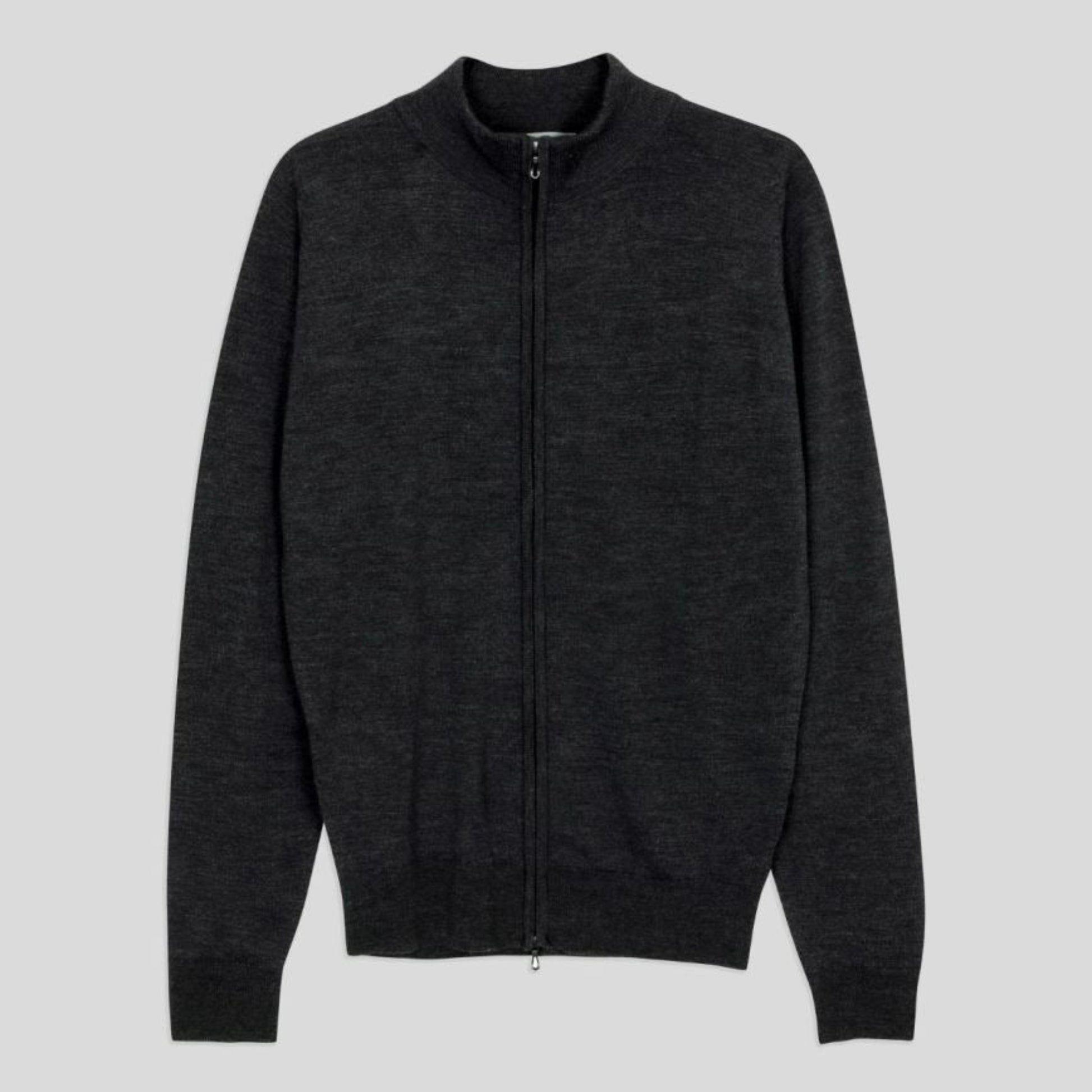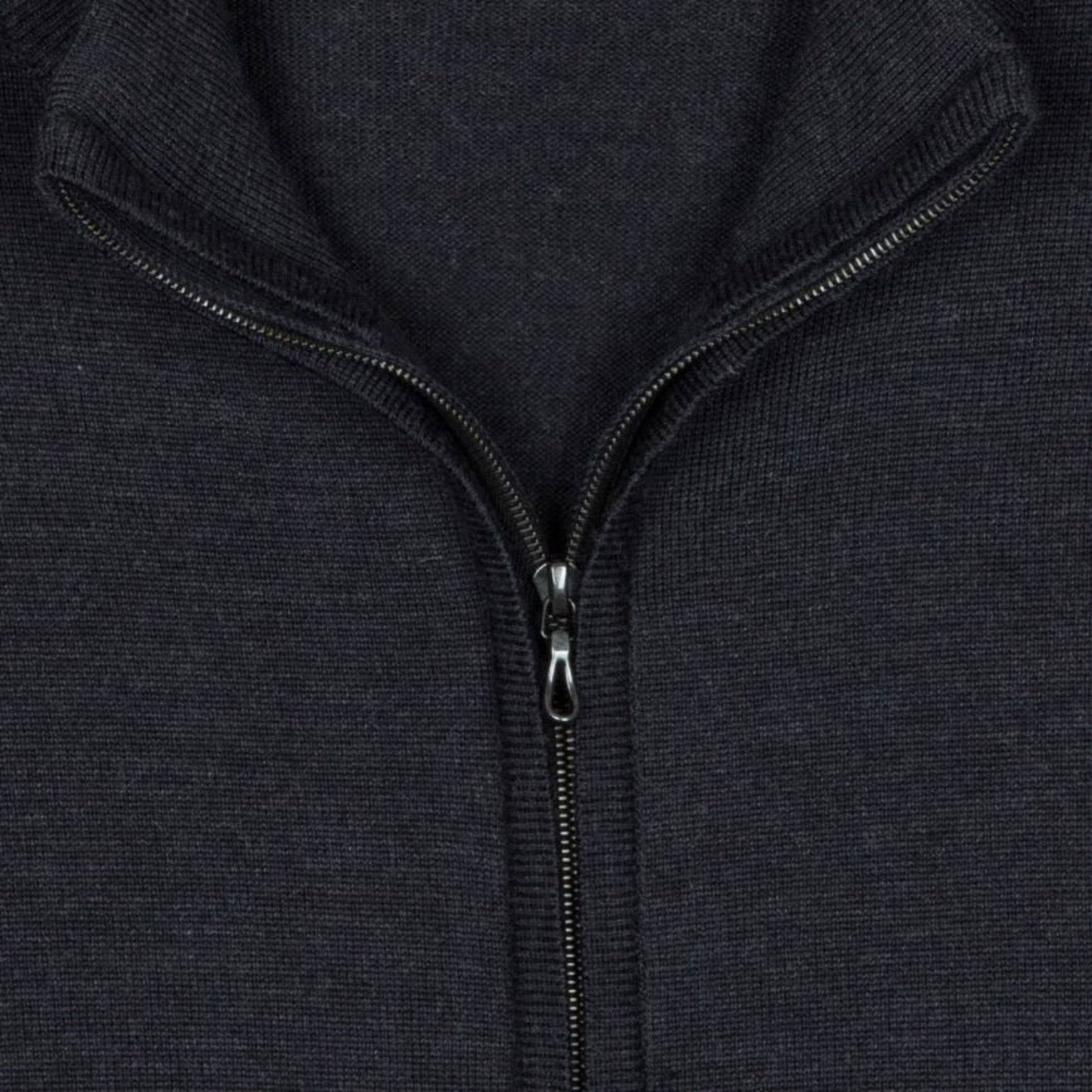 This medium knit jacket is crafted from extra fine merino wool and features a full zip closure and ribbed hem and cuffs. The versatile design showcases everyday luxury at its best, and the weight of the knit allows for it to be worn in place of a coat in milder weather or as a layering piece in cooler months.