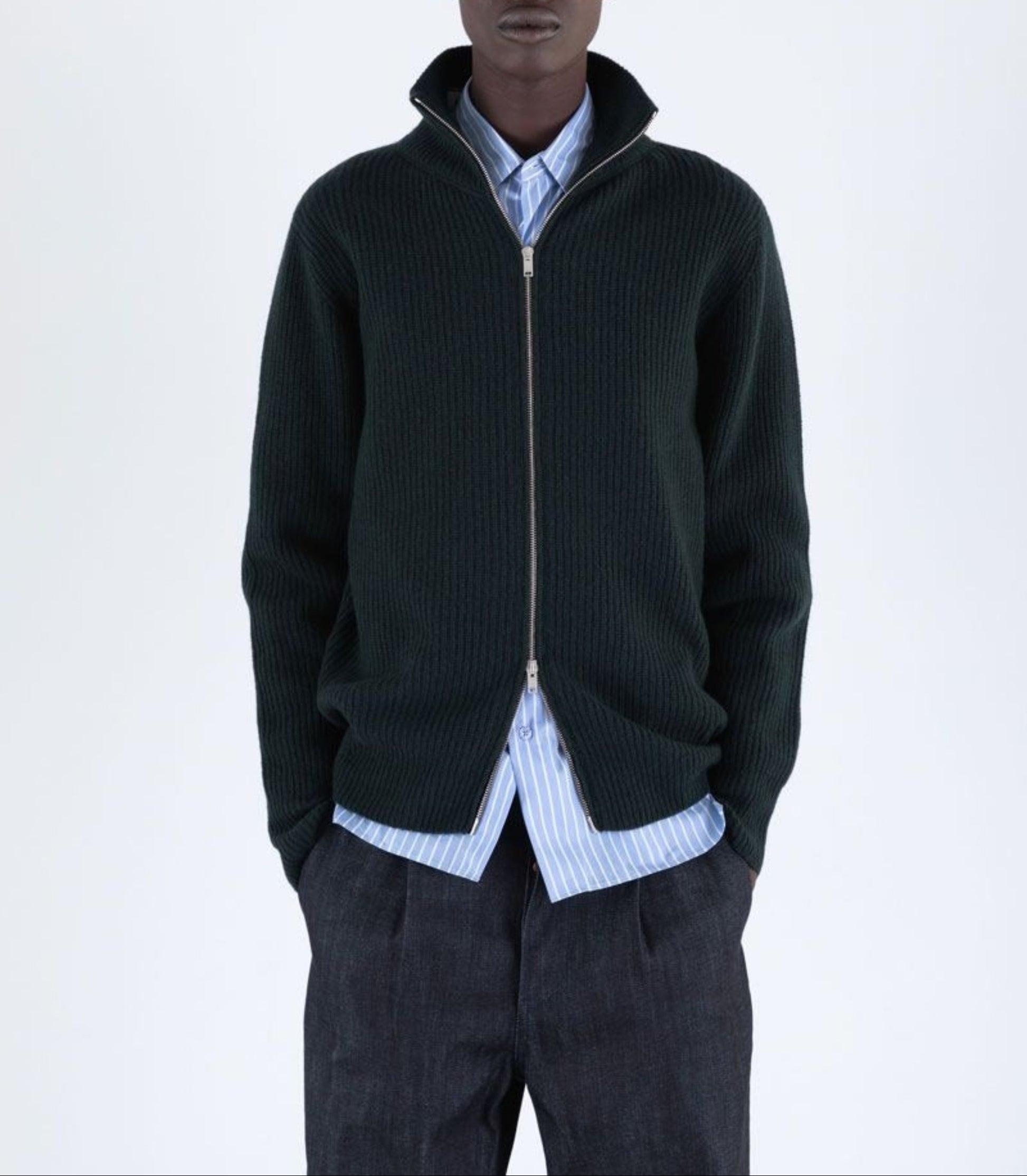 Mallam is our chunky knit men's jacket crafted from John Smedley’s Eco Cashmere, 50% recycled cashmere and 50% ultrafine merino wool, and is finished with a stand-up collar. Featuring a full zip fastening and long sleeves, this knitted jacket is a versatile piece to add to your collection.