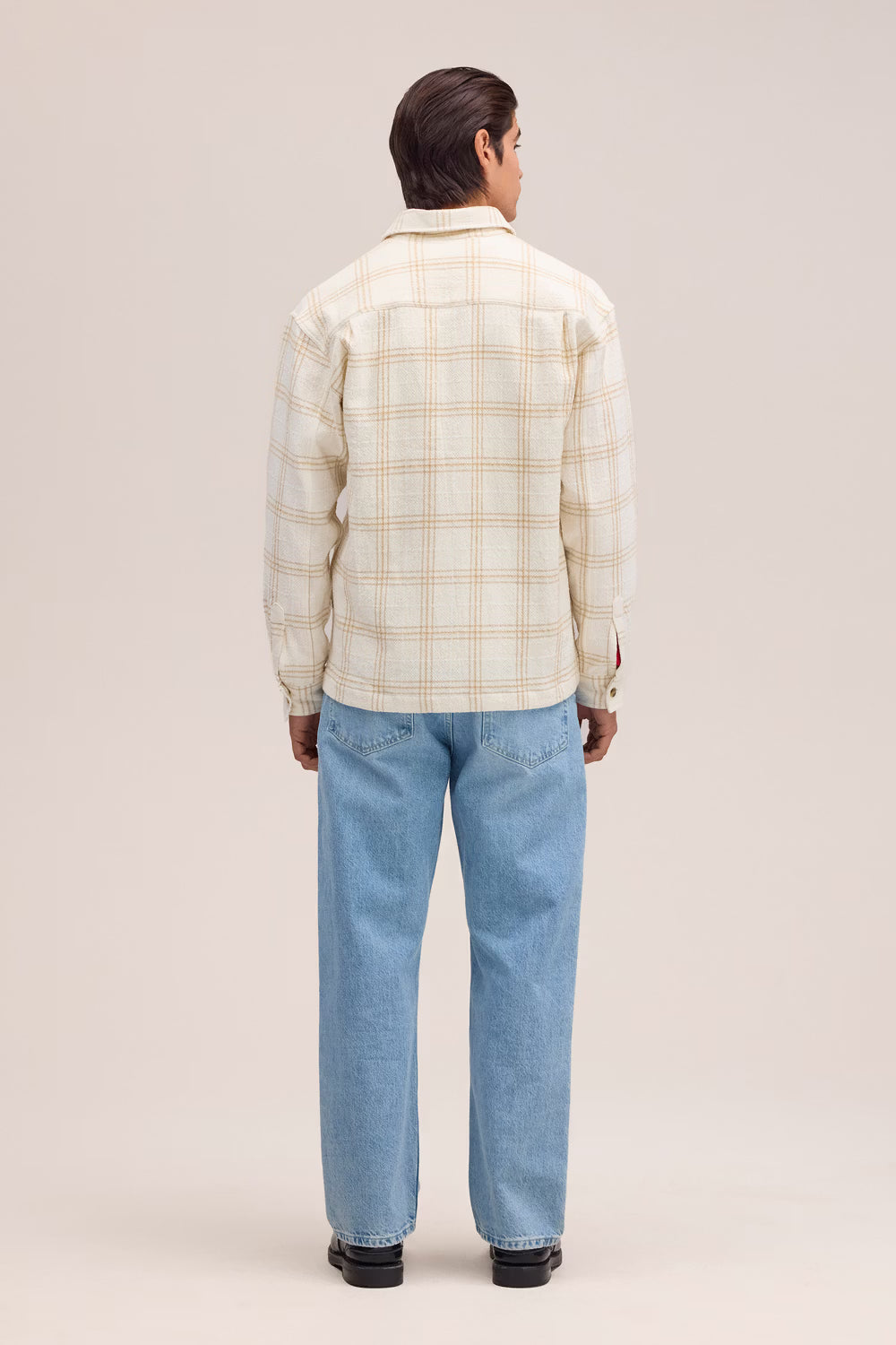 Relaxed-fit overshirt made from luxurious Italian yarn-dyed cotton crepe. Inspired by vintage workwear, it features a pronounced patch pocket, reinforced twin-needle topstitching, and imitation horn buttons. Made in Portugal and crafted with certified organic fibres, it balances rugged durability with elevated everyday wear.