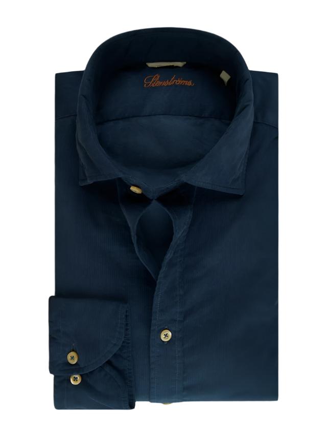 This corduroy shirt is made of cotton and is detailed with mother of pearl buttons, single cuffs and a cut away collar